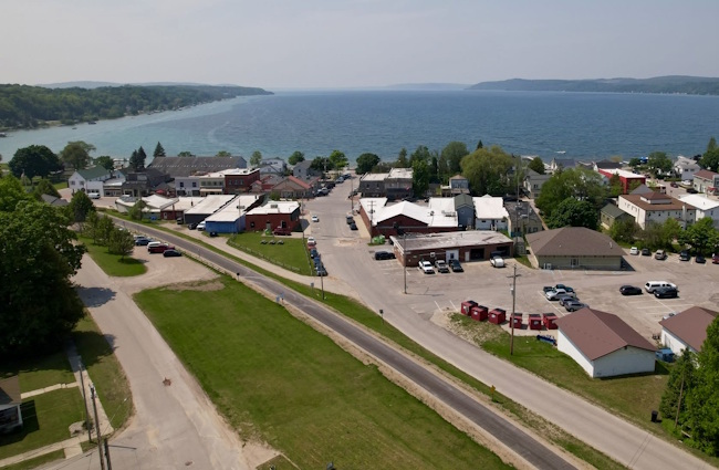 Aerial view of newly paved surface out of Beulah towards Thompsonville.